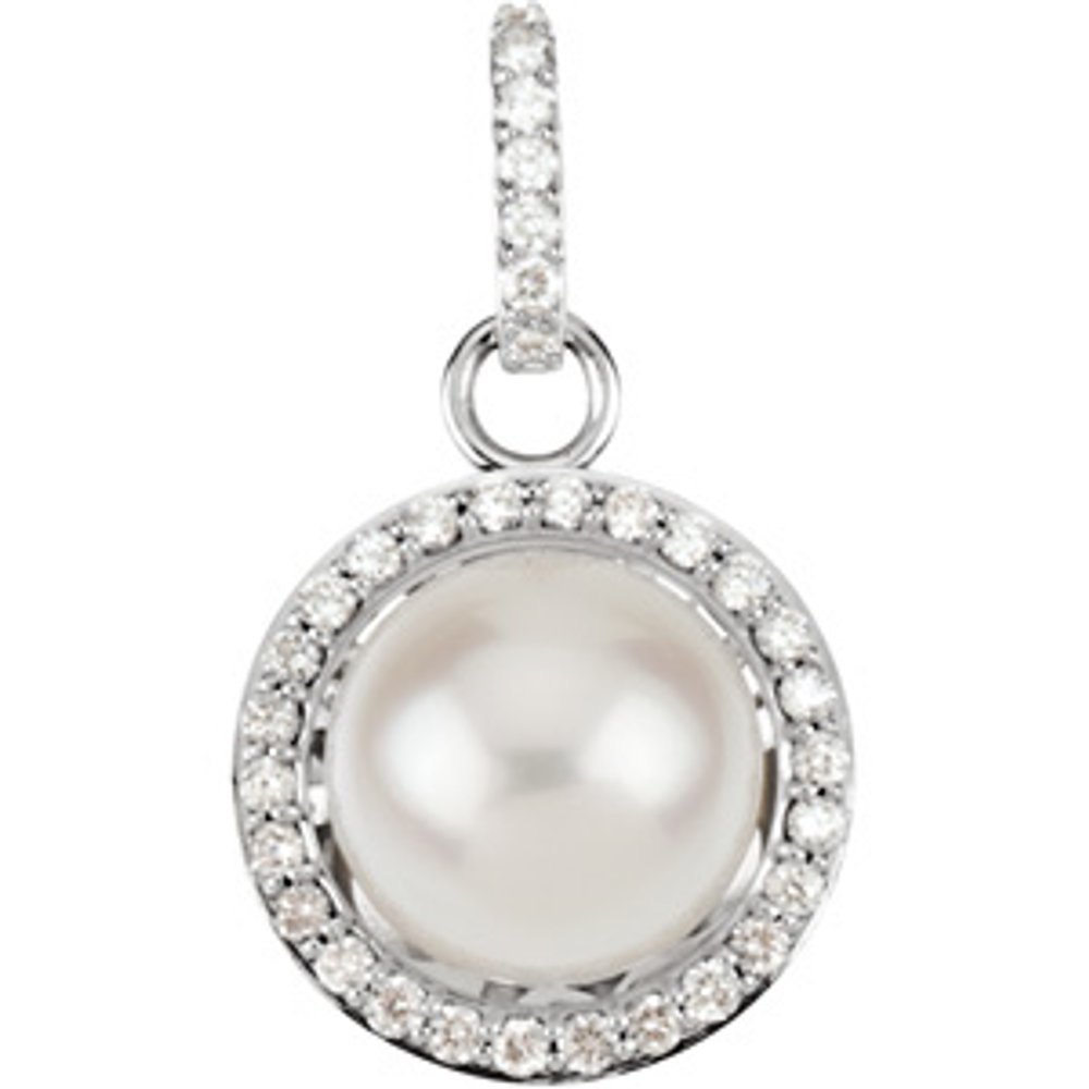 Description: 14k White Gold Halo-Style Pendant for 10mm Pearl