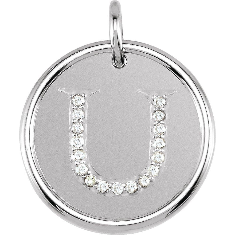 Sterling Silver Round Shape Diamond Initial U Necklace (.08 cttw, G-H, I1), 18"