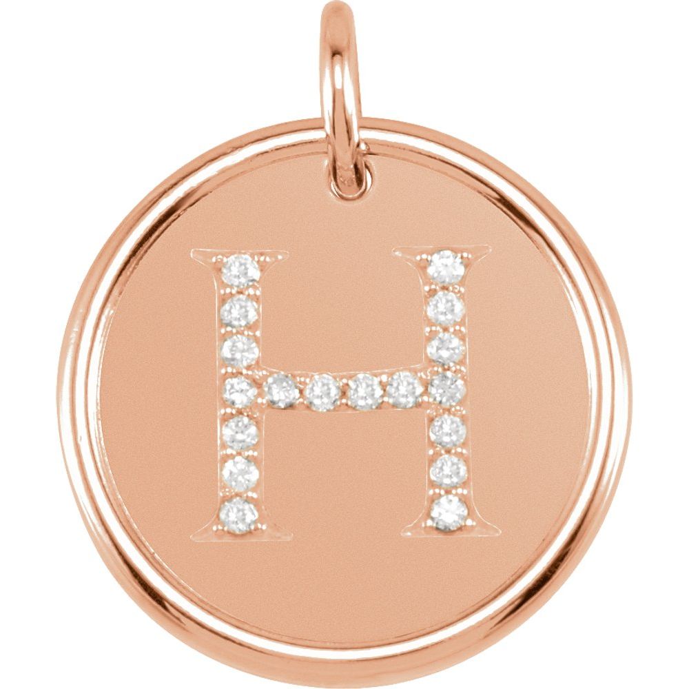 14k Rose Gold Round Shape Diamond Initial H Pendant (17.2x17.2mm, 1/10 cttw, G-H, I1)