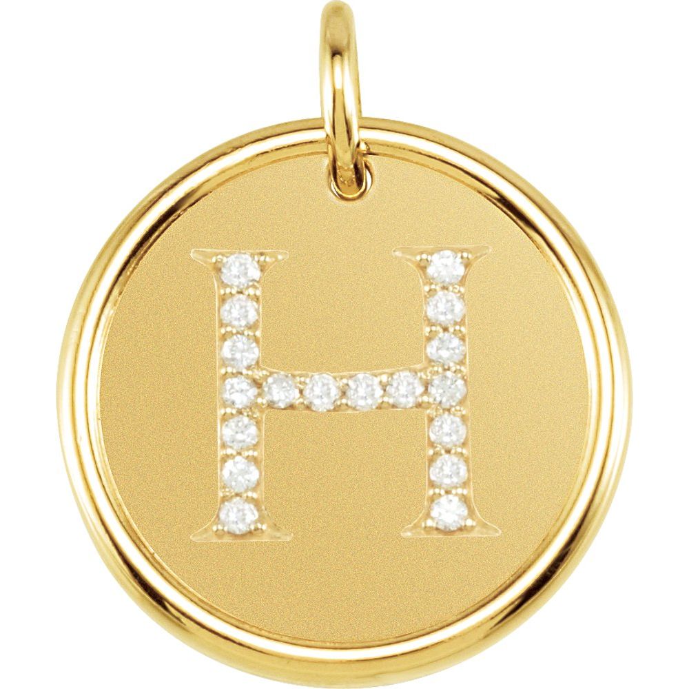14k Yellow Gold Round Shape Diamond Initial H Pendant (17.2x17.2mm, 1/10 cttw, G-H, I1)