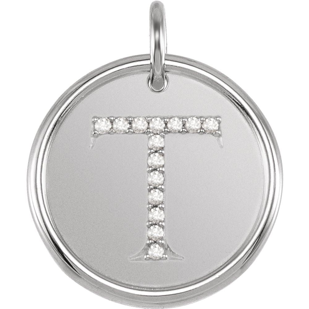 Sterling Silver Round Shape Diamond Initial T Necklace (.07 cttw, G-H, I1), 18"