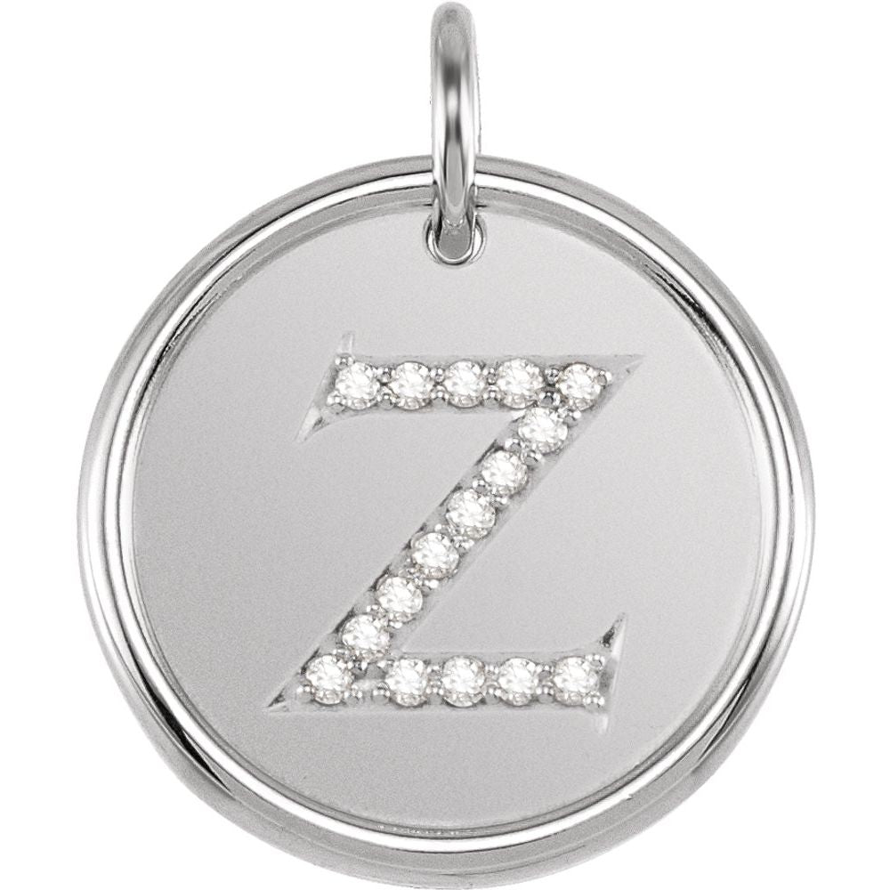 14k White Gold Round Shape Diamond Initial Z Pendant (17.2x17.2mm, .08 cttw, G-H, I1)