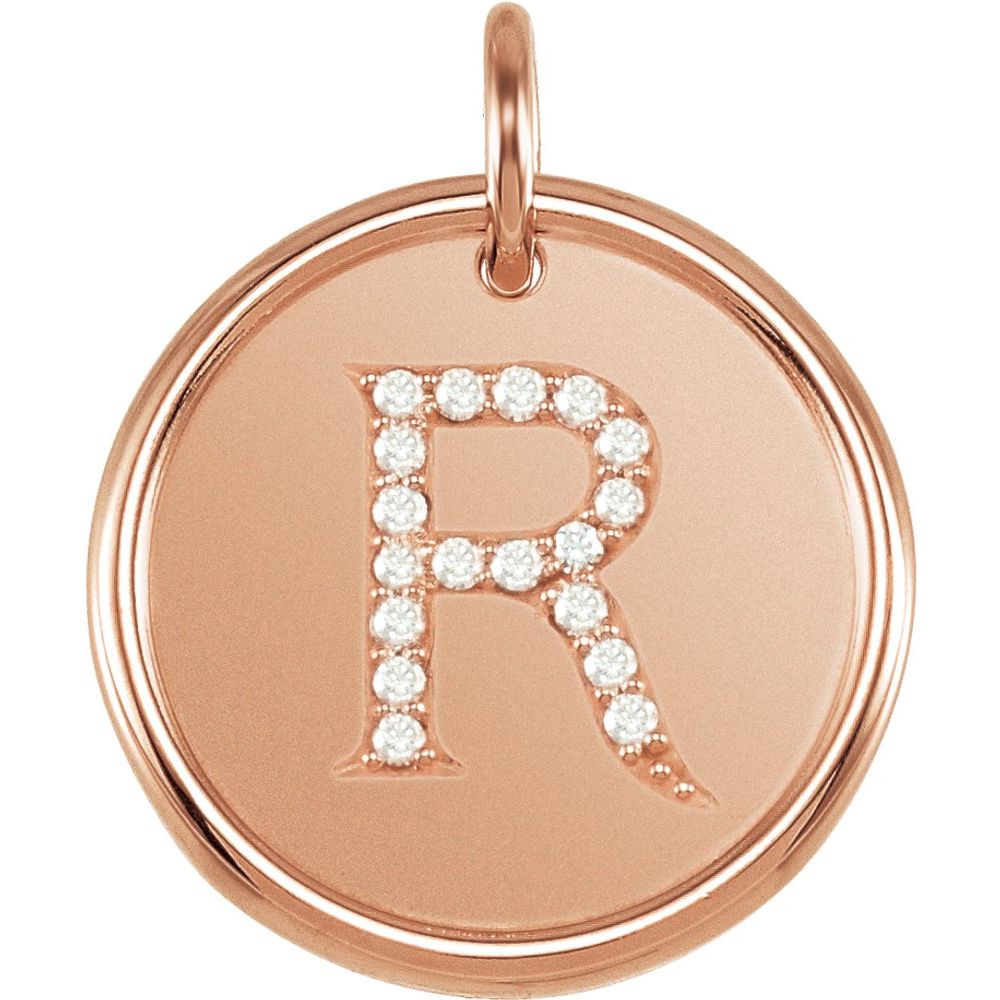 18k Yellow Gold Round Shape Vermeil Diamond Initial R Pendant (1/10 cttw, G-H, I1, 17.25mm)