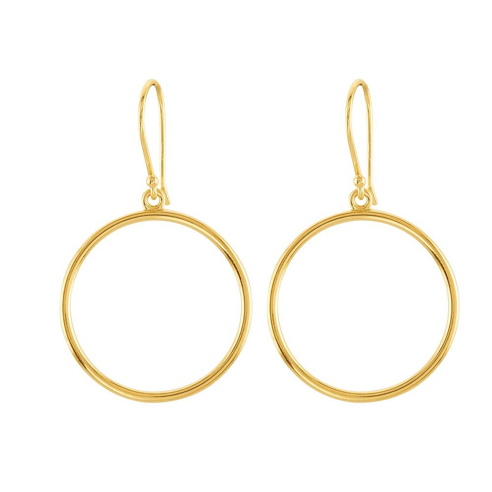 14k Yellow Gold Circle Shaped Drop Dangle Earrings