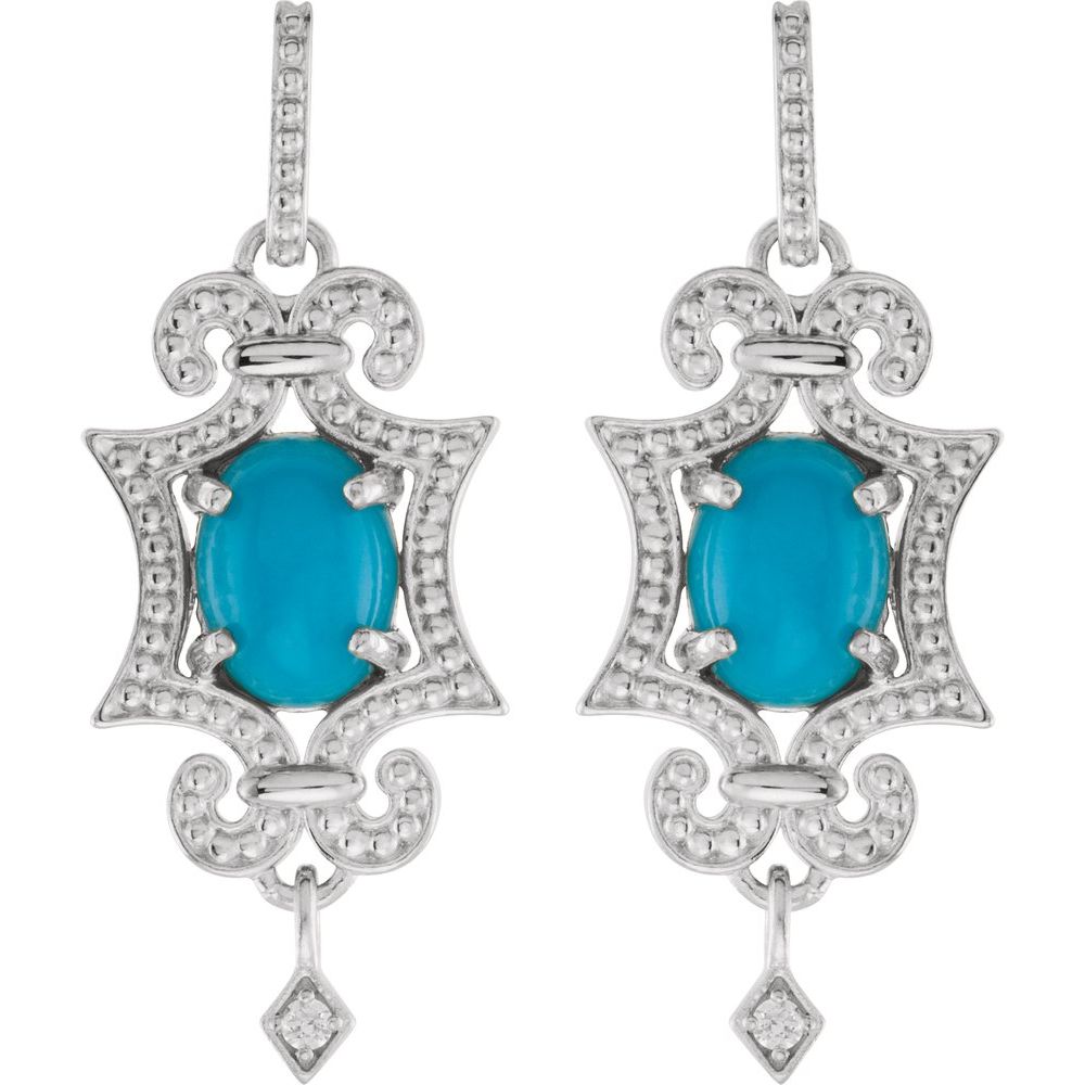 Sterling Silver and 14k White Gold Turquoise and 0.03 cttw Diamond Drop Dangle Earrings