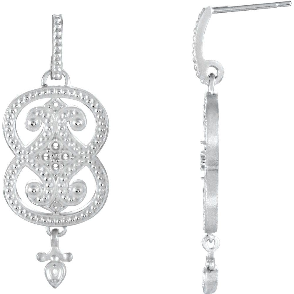 14k White Gold Vintage-Inspired Drop Dangle Earring Mounting (Only One Piece Sold, Not the Pair, Mounting Only, Not All Stones Included)