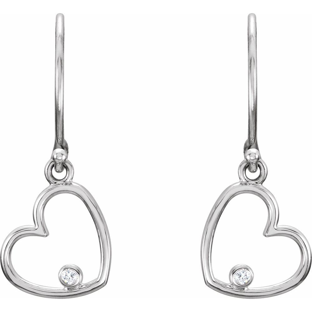 14k White Gold 2mm Round Shape Heart Drop Dangle Earrings Mounting (Left Side Mounting Only, Not All Stones Included)
