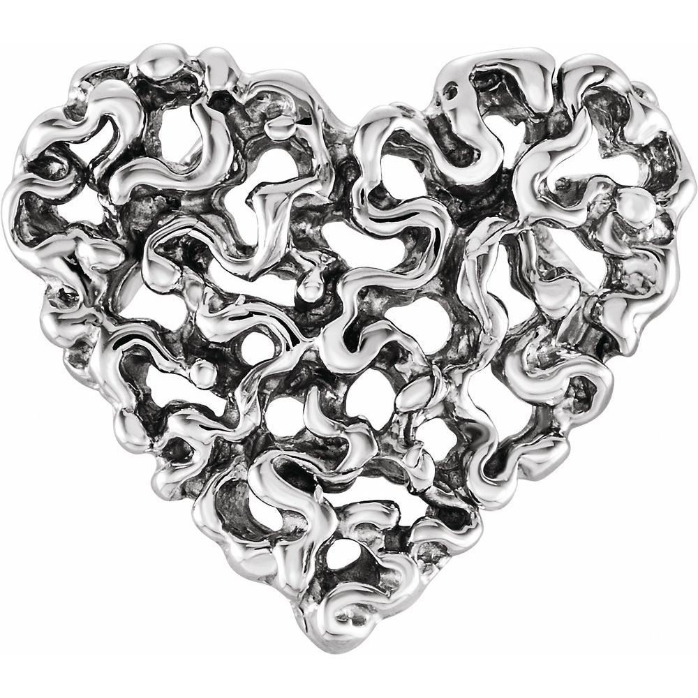 Semi-Polished 14k White Gold Heart Shape Nugget Pendant (17x16mm)
