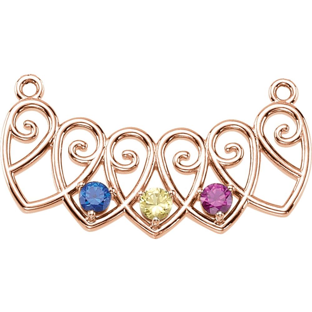 14k Rose Gold 3-Stone Heart Shape Family Necklace Center (Mounting Only, Not All Stones Included)