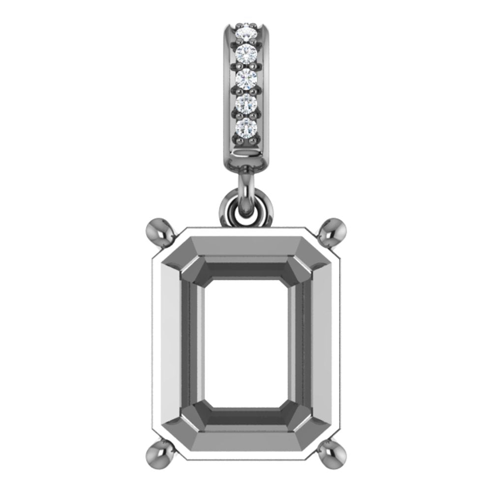 14k White Gold 11x9mm Emerald Cut .03 cttw Diamond Semi-Mount Pendant (20.1x9.1mm, Mounting Only, Not All Stones Included)