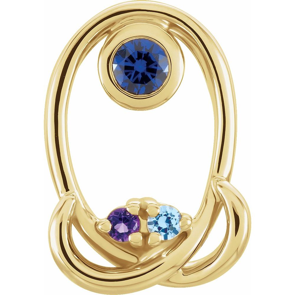 Description: 10k Yellow Gold 3-Stone Mothers Hugz Family Slide Pendant Mounting