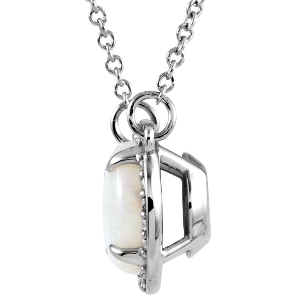 Description: 14k White Gold Opal and .05 cttw Diamond 16" Necklace