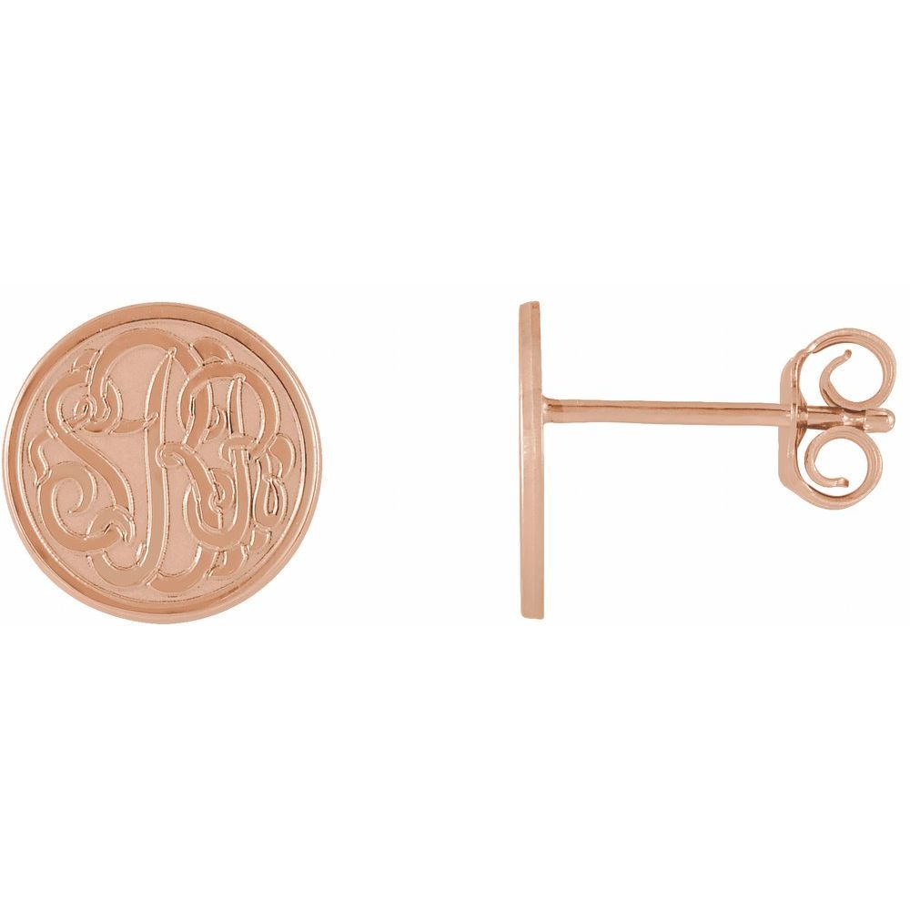 Sterling Silver Plated with 14k Rose Gold 10mm 3-Letter Script Monogram Personalized Earrings