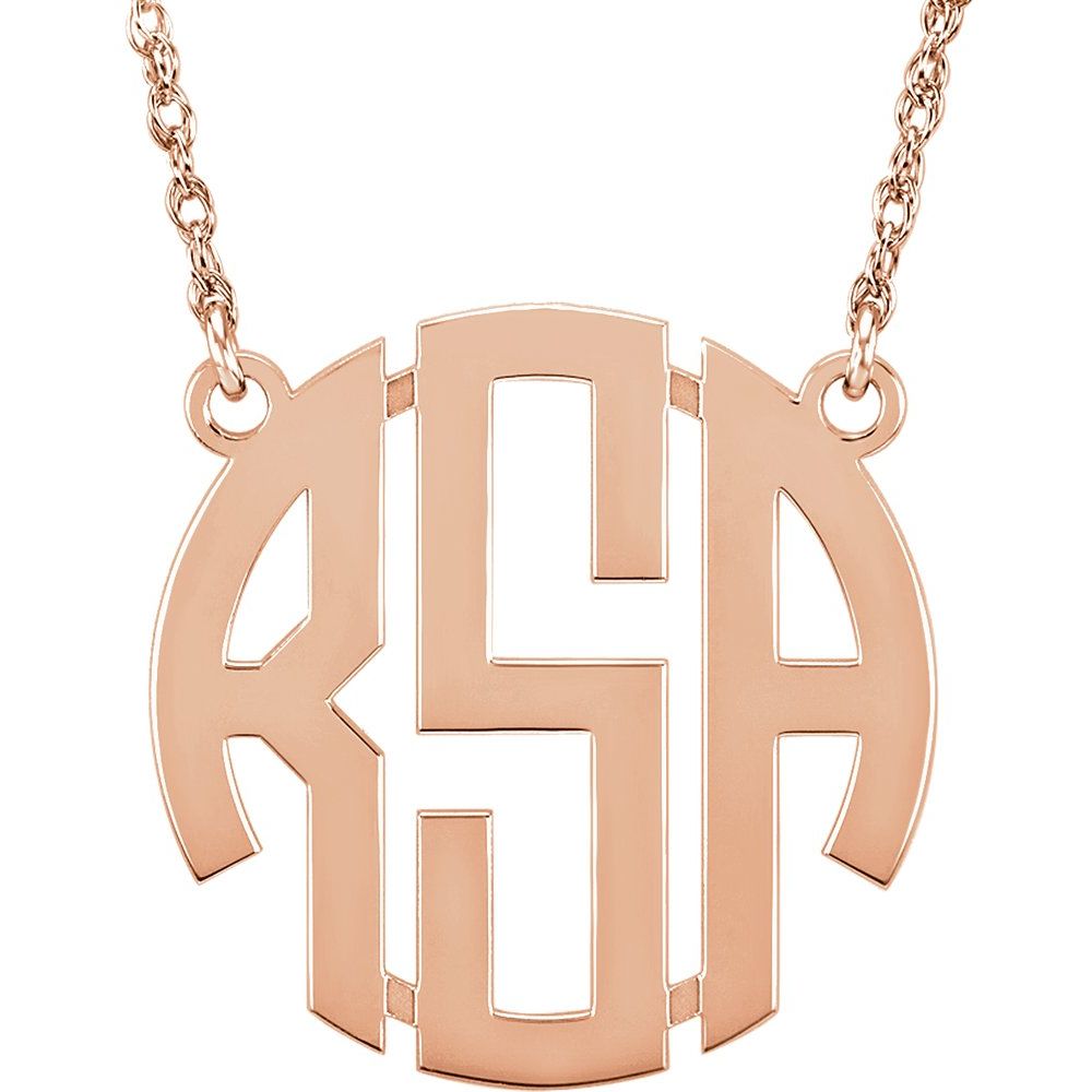 Description: 14k Rose Gold-Plated Sterling Silver 25mm 3-Letter Block Monogram Necklace