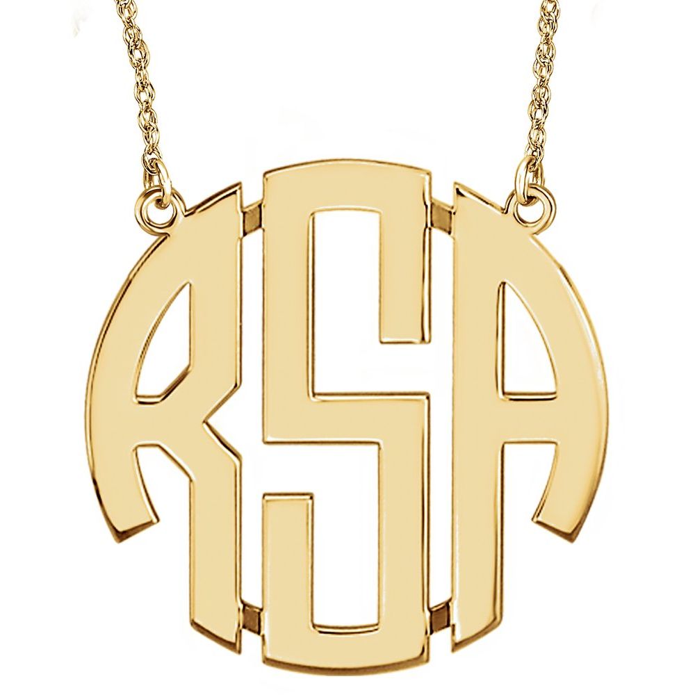 Description: 10k Yellow Gold 40mm 3-Letter Block Monogram Necklace