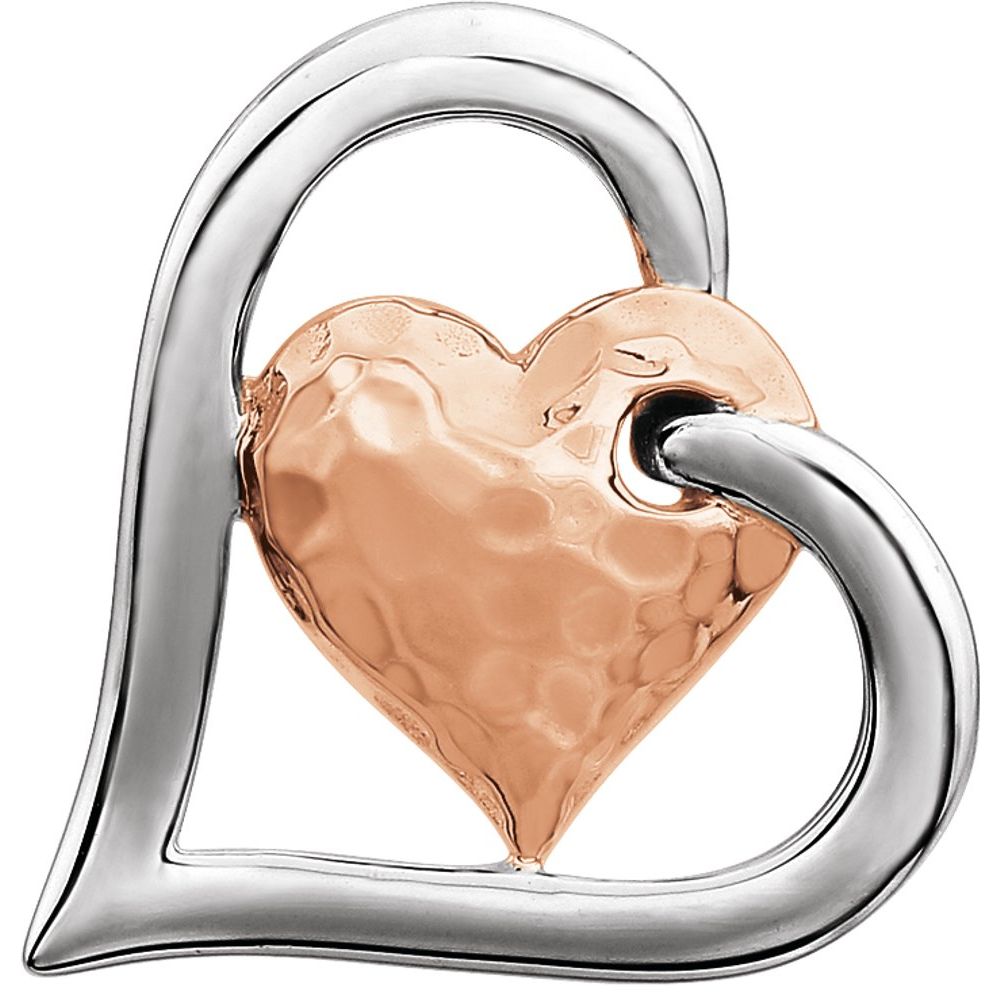 Description: 14k Rose Gold and White Hammered Double Heart Pendant