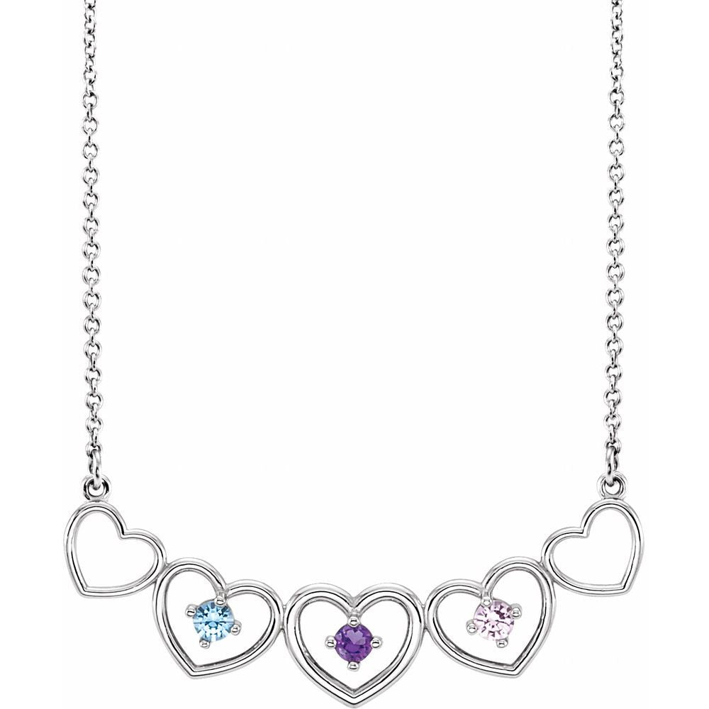 Description: Sterling Silver 3-Stone Family Heart 17.5" Necklace Mounting
