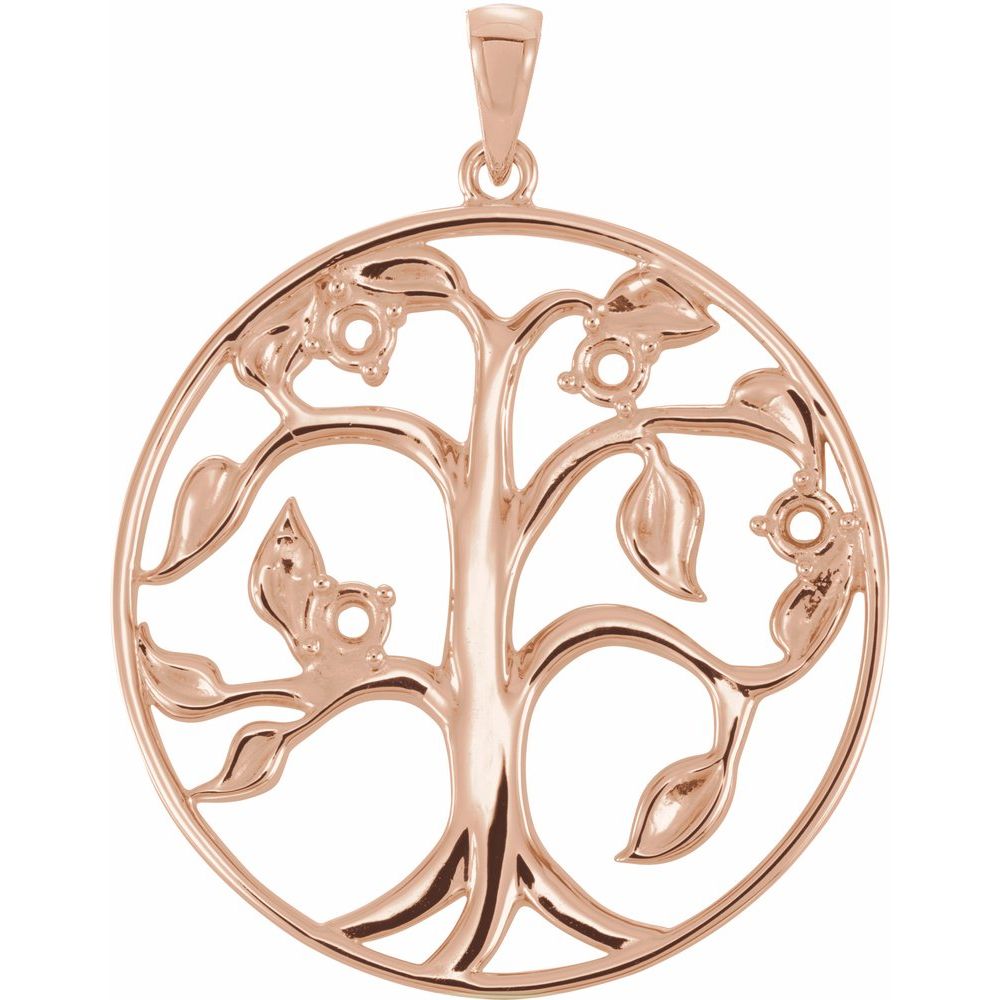 10k Rose Gold Round Shape 4-Stone Family Tree Pendant (35x3mm, Mounting Only, Not All Stones Included)