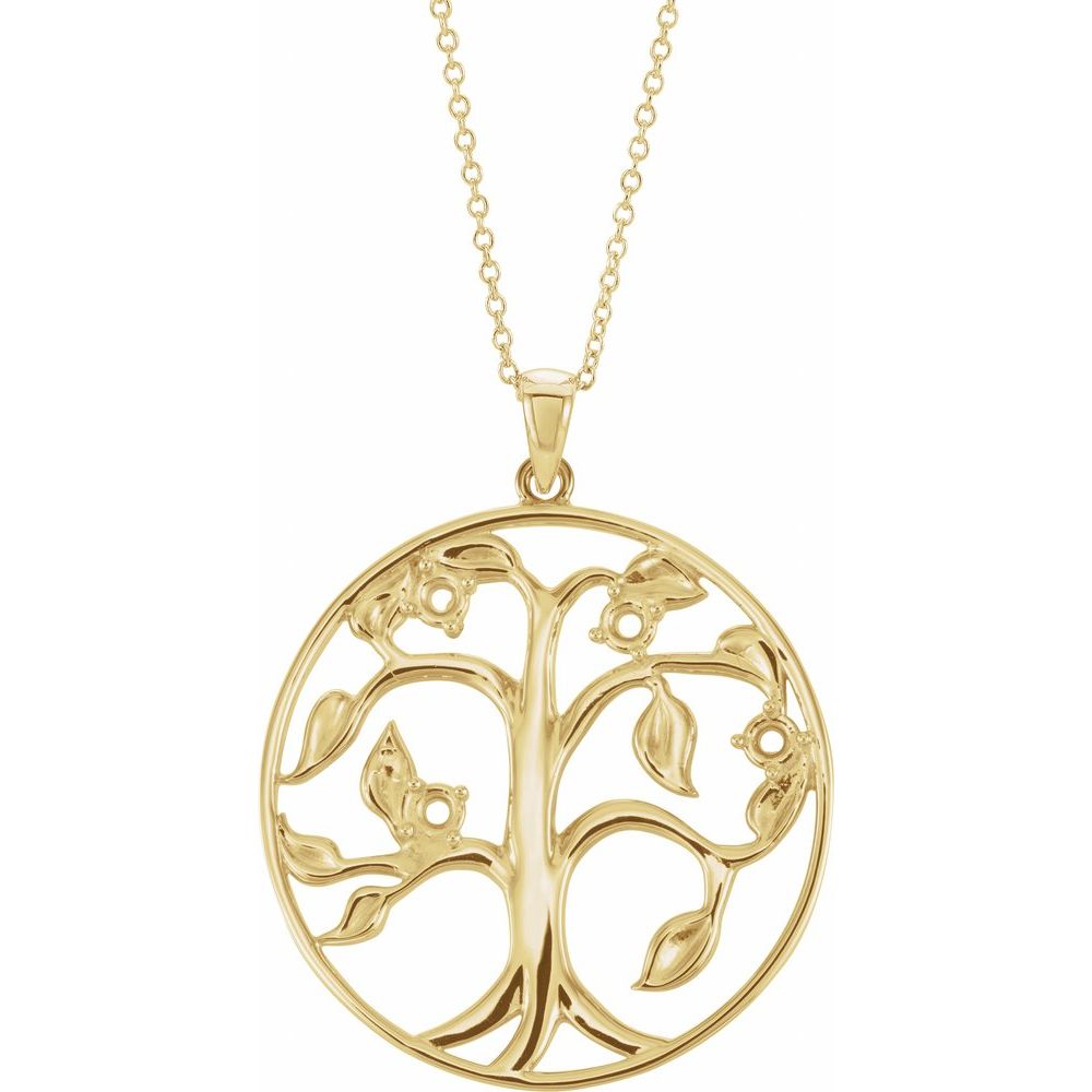 10k Yellow Gold Round Shape 4-Stone Tree Family Necklace (35x3mm, Mounting Only, Not All Stones Included), 16-18"