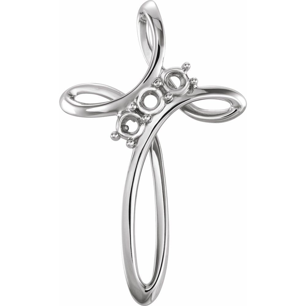 Continuum Sterling Silver Round Shape 3 Three-Stone Family Slide Cross Pendant (Mounting Only, Not All Stones Included)