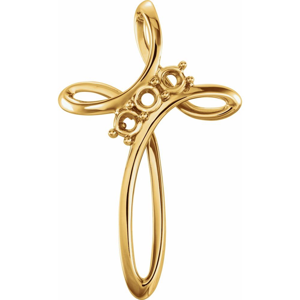 10k Yellow Gold Round Shape 3 Three-Stone Family Cross Slide Pendant for Approximately 1/3 cttw (30.4x19.16mm, Mounting Only, Not All Stones Included)