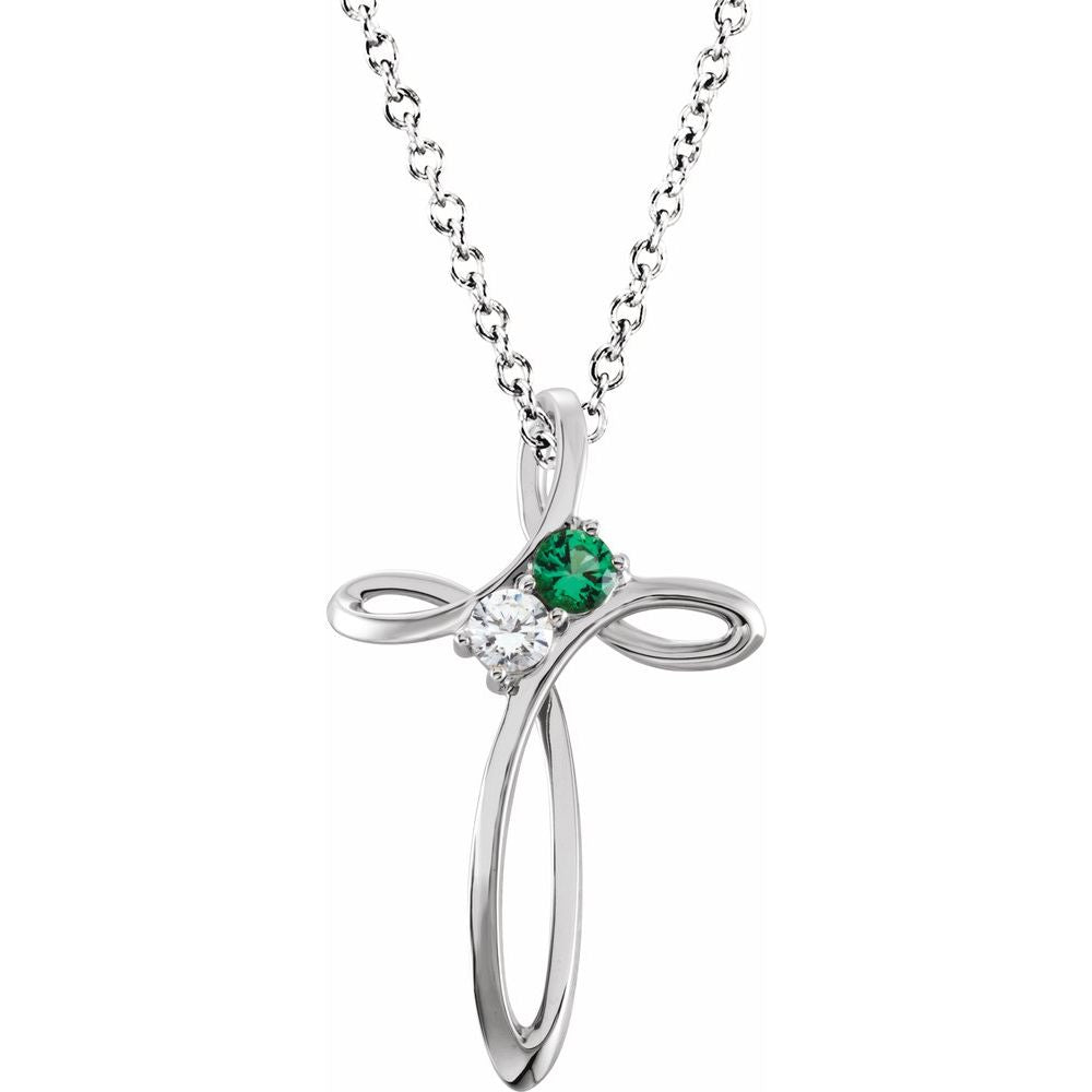 Description: Sterling Silver 2-Stone Family Cross 16-18" Necklace Mounting