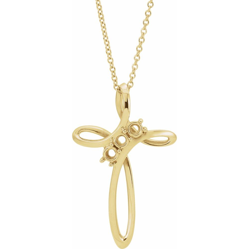 14k Yellow Gold Round Shape 3-Stone Cross Family Necklace for Approximately 1/3 cttw (30.4x19.2mm, Mounting Only, Not All Stones Included), 16-18"