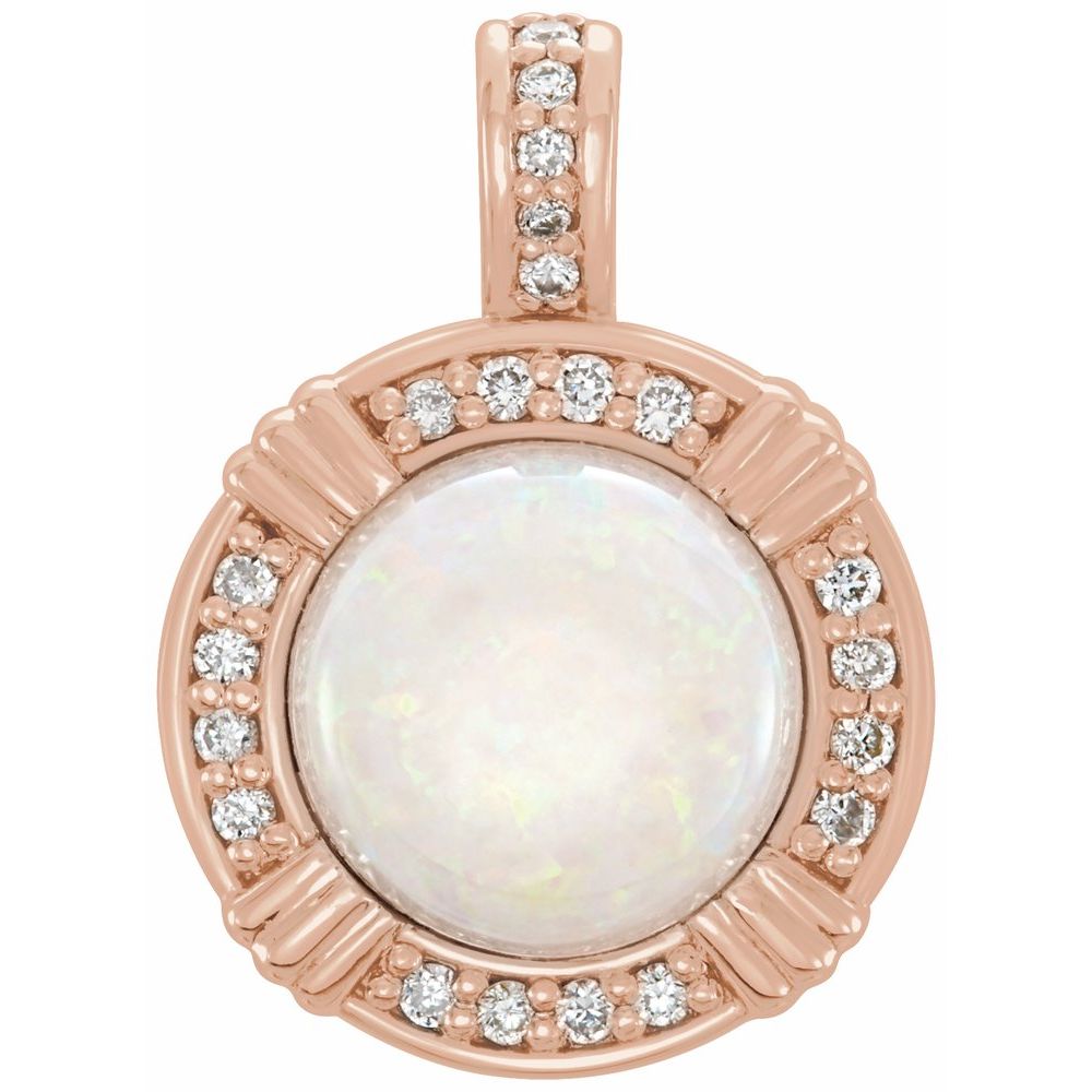 14k Rose Gold Round Shape Opal and 1/10 cttw Diamond Cabochon Pendant (16.3x11.8mm, G-I, I1)