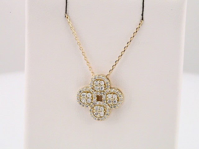 14k Yellow Gold Round Shape Diamond Clover Cluster Necklace (15.3x15.3mm, 1/2 cttw, G-H, I1), 18"