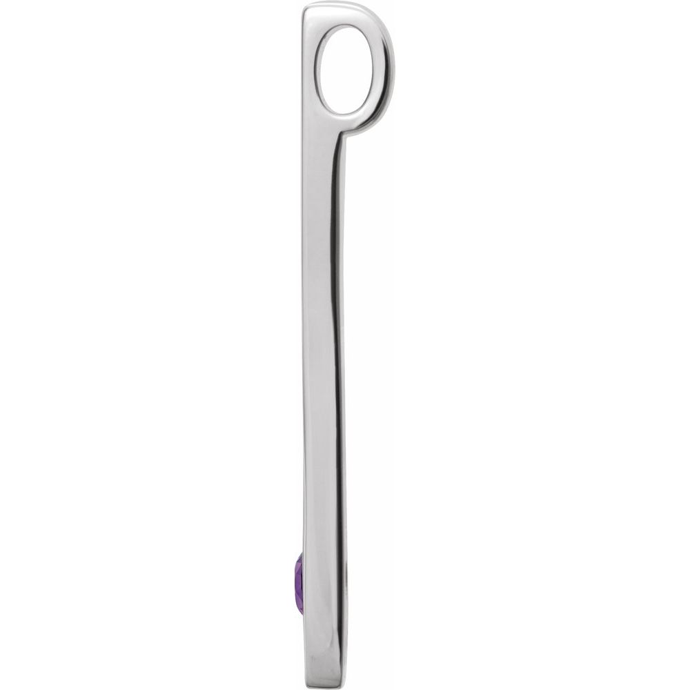 Sterling Silver Round Shape Amethyst Family Engraveable Bar Slide Pendant (22.9x3.5mm)