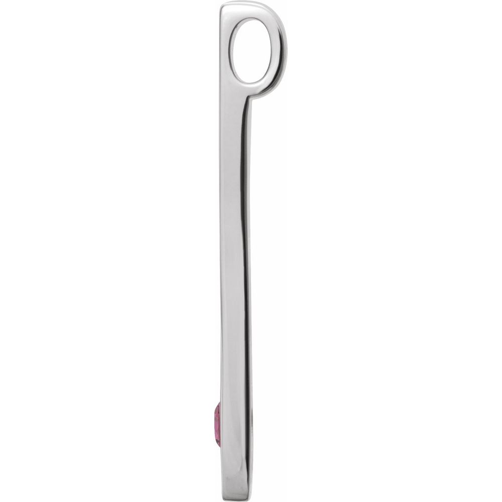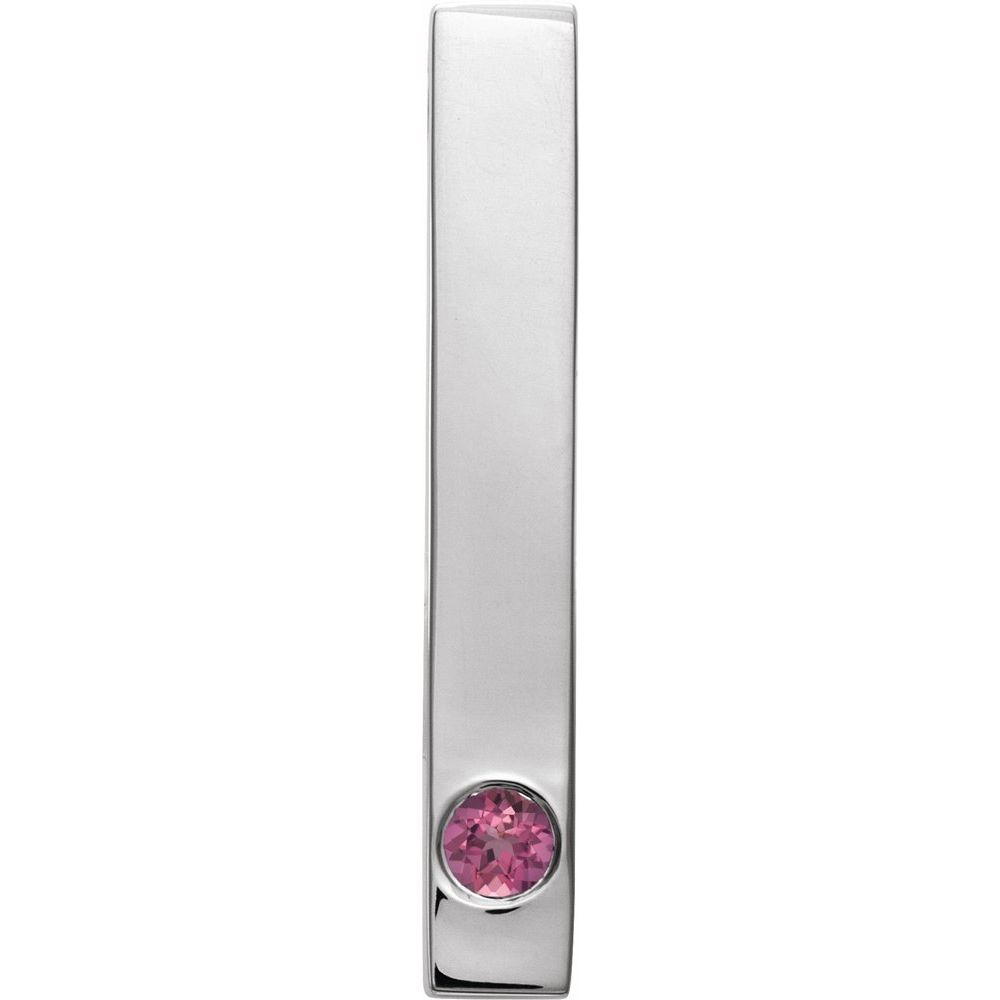 Sterling Silver Round Shape Pink Tourmaline Family Engraveable Bar Slide Pendant (22.9x3.5mm)
