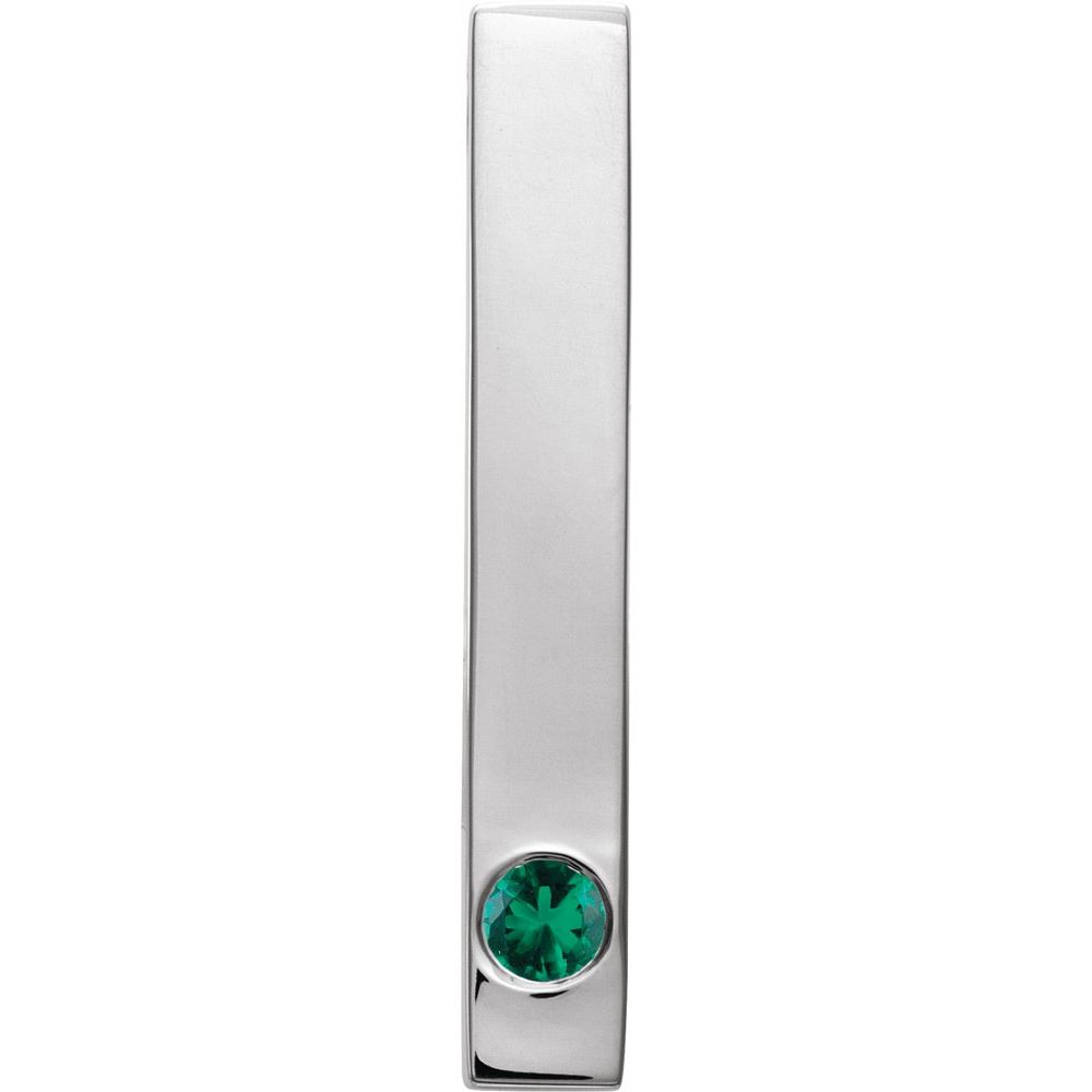 Description: Sterling Silver Lab-Grown Emerald Family Engravable Bar Slide Pendant