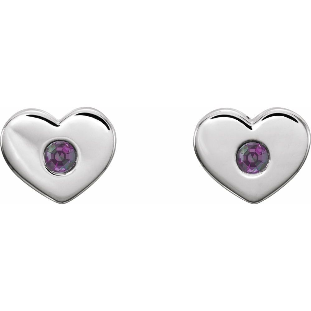 Sterling Silver Lab-Grown Alexandrite Heart Shape Stud Earrings