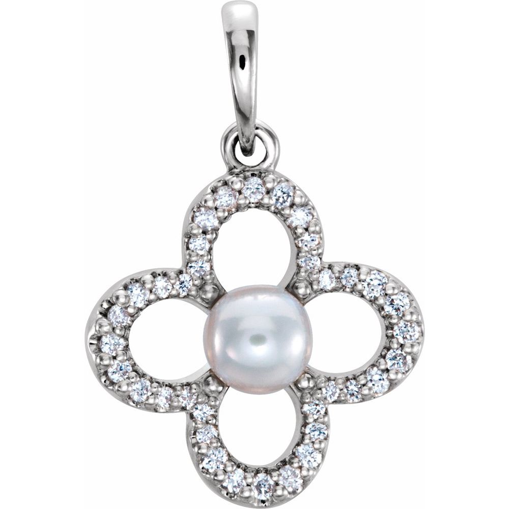 Description: 14k White Gold Freshwater Cultured Pearl and 1/6 cttw Diamond Pendant