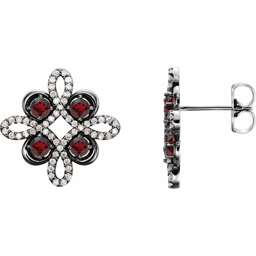 Description: Genuine Garnet And 1/4 cttw Diamond Earrings