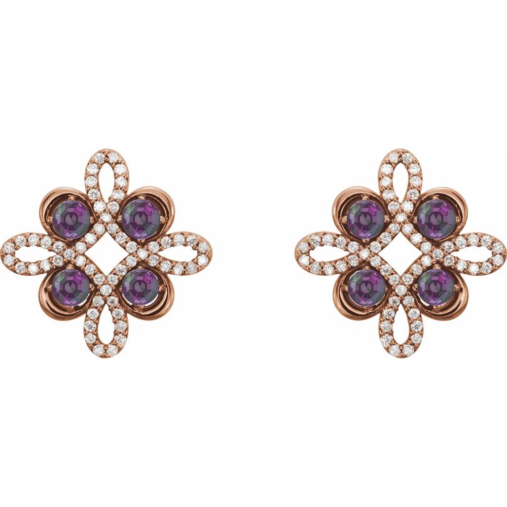 14k Rose Gold Alexandrite and 1/4 cttw Diamond Stud Earrings (G-H, I1)