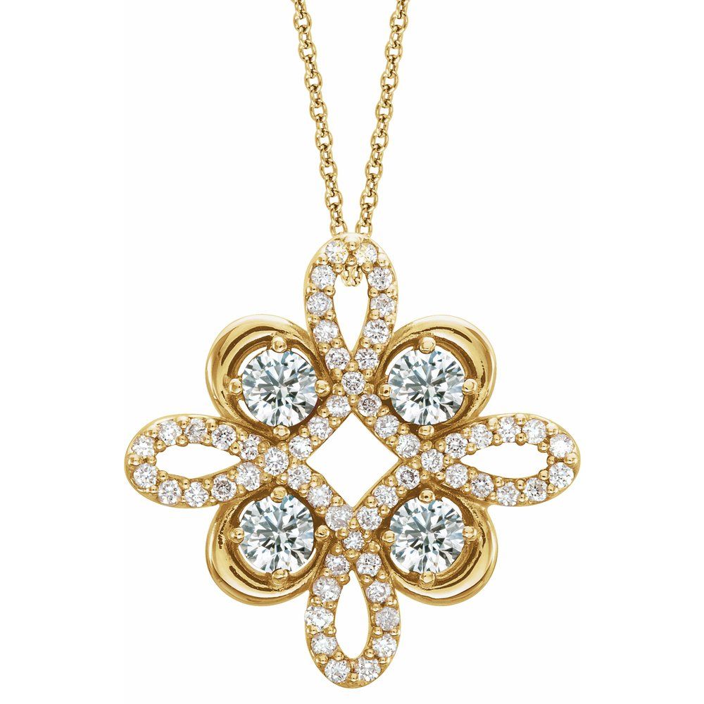 14k Yellow Gold Round Shape Diamond Clover Necklace (15.5x15.5mm, 1/6 cttw), 16-18"