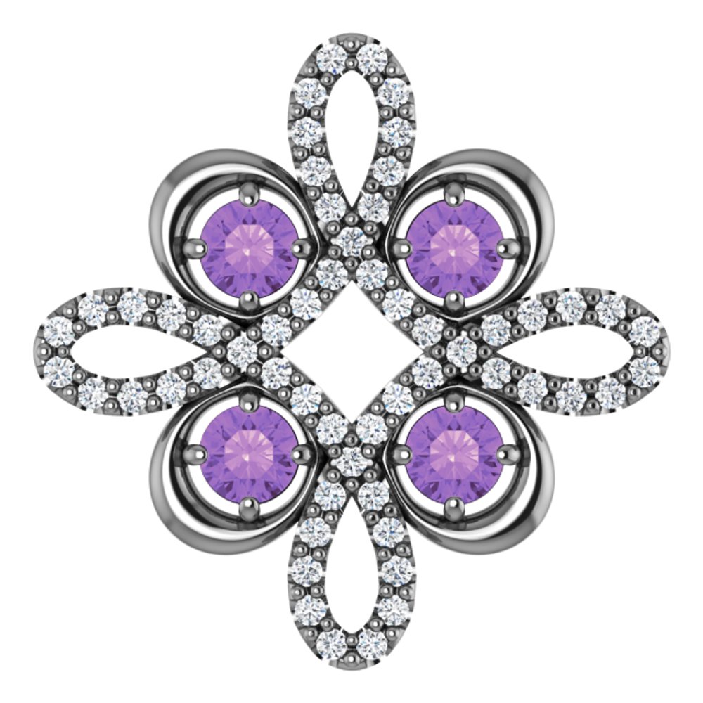 Description: 14k Rose Gold Amethyst and 1/6 cttw Diamond Clover Pendant