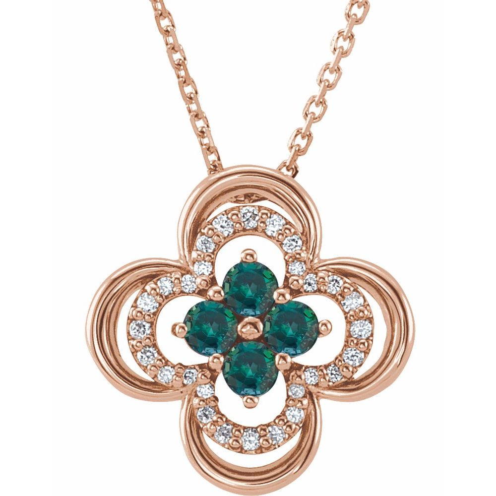14k Rose Gold Round Shape Lab-Grown Alexandrite and 1/10 cttw Diamond Clover Necklace (12.5x12.5mm, G-H, I1), 18"