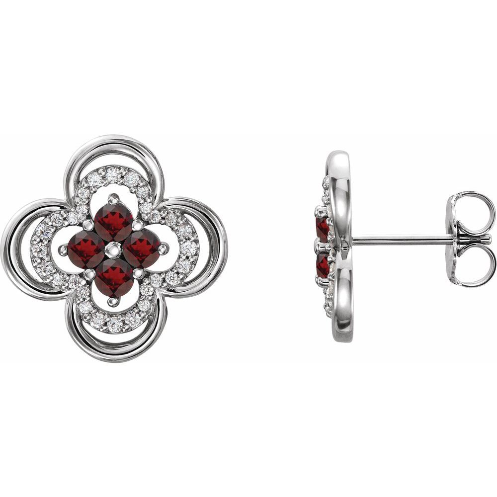 14k White Gold Mozambique Garnet and 1/5 cttw Diamond Clover Stud Earrings