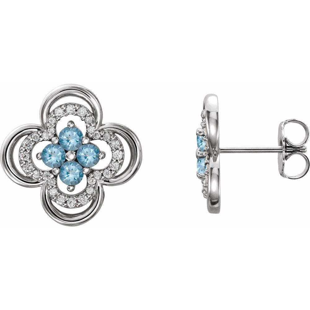 Platinum Aquamarine and 1/5 cttw Diamond Clover Stud Earrings