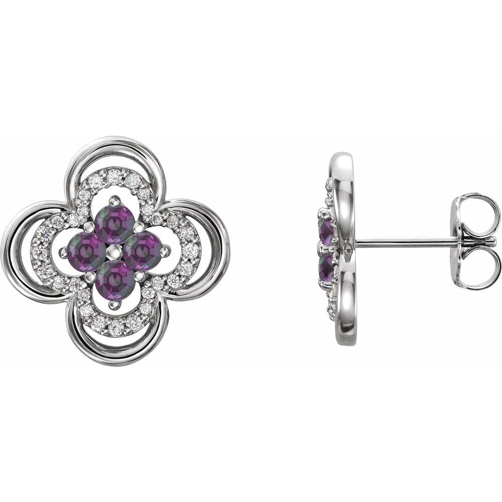 14k White Gold Alexandrite and 1/5 cttw Diamond Clover Stud Earrings