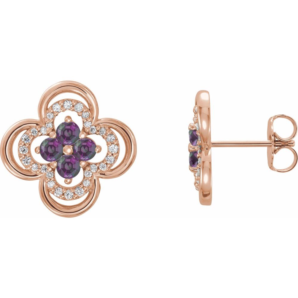 14k Rose Gold Alexandrite and 1/5 cttw Diamond Clover Stud Earrings
