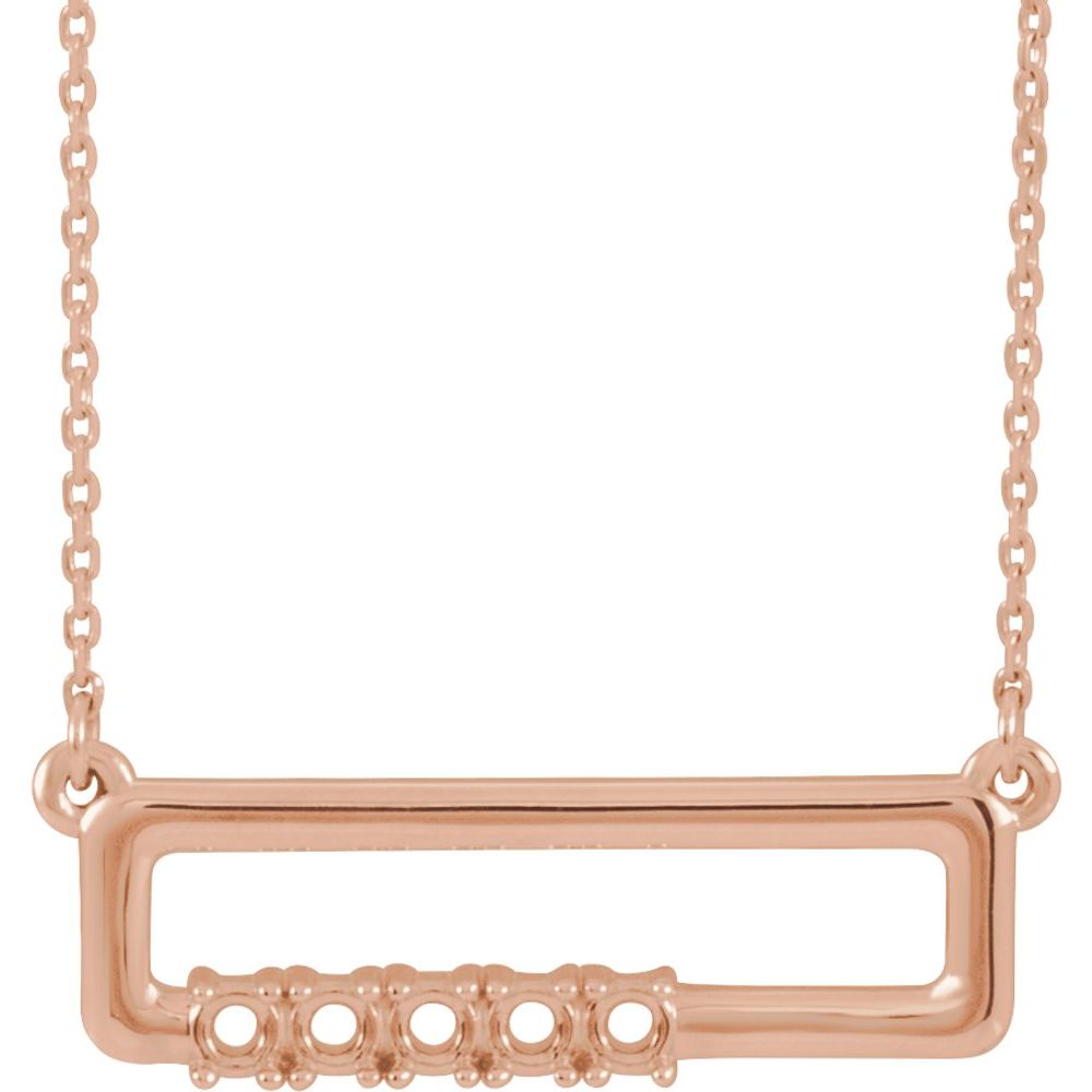 Description: 14k Rose Gold 5-Stone Family Rectangle 16.5" Necklace Mounting