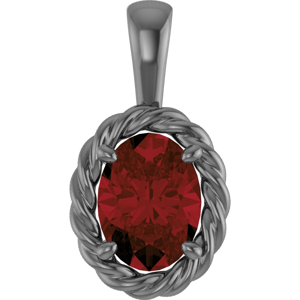 14k Rose Gold Oval Shape Mozambique Garnet Rope Solitaire Pendant (19.6x8.6mm)