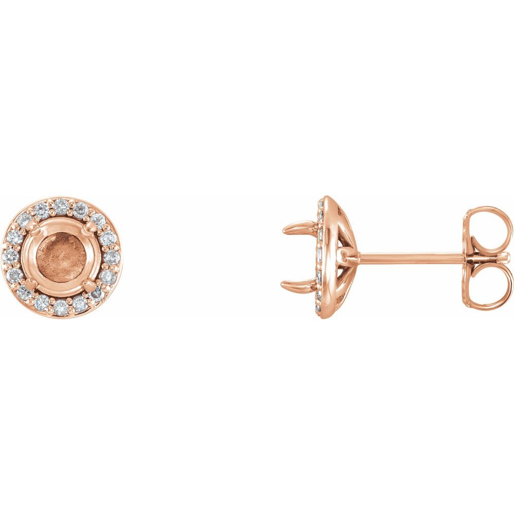 14k Rose Gold 5mm Round Shape Diamond Semi-Set Halo-Style Stud Earrings Mounting (Mounting Only, Not All Stones Included, 1/8 cttw, G-H, I1)