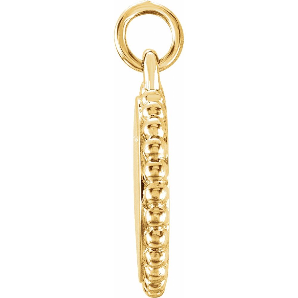 14k Yellow Gold Engraveable Beaded Disc Personalized Pendant (15.3x11.7mm)