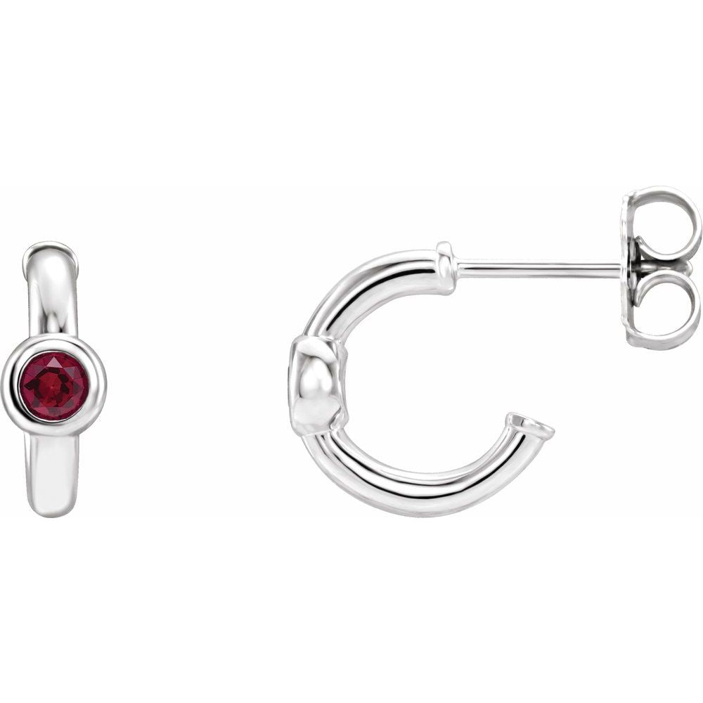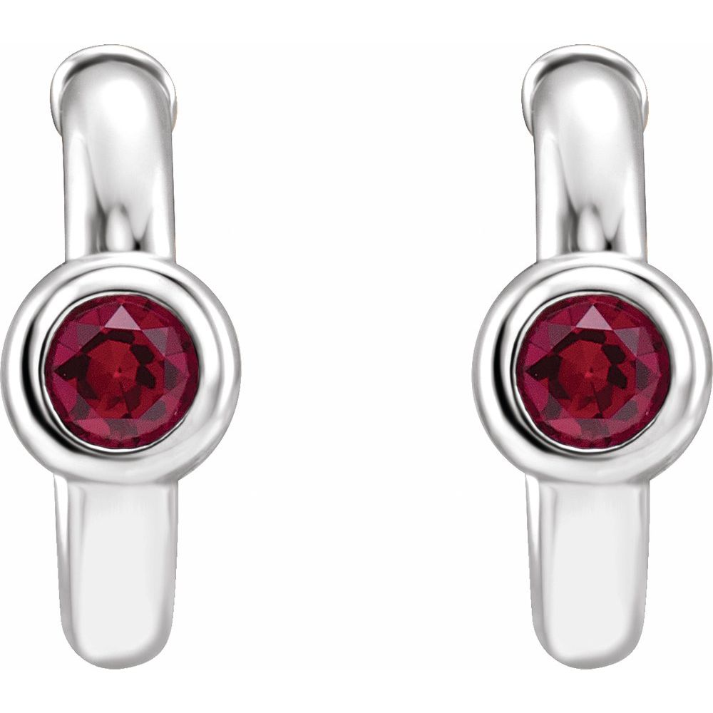 14k White Gold Lab-Grown Ruby Hoop Earrings