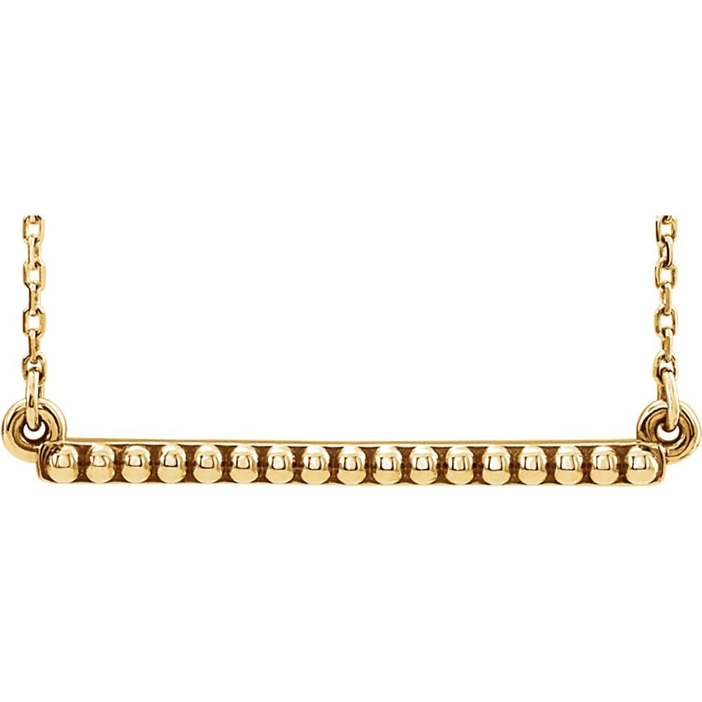 14k Yellow Gold Beaded Bar Necklace (27.7x3.4mm), 16-18"