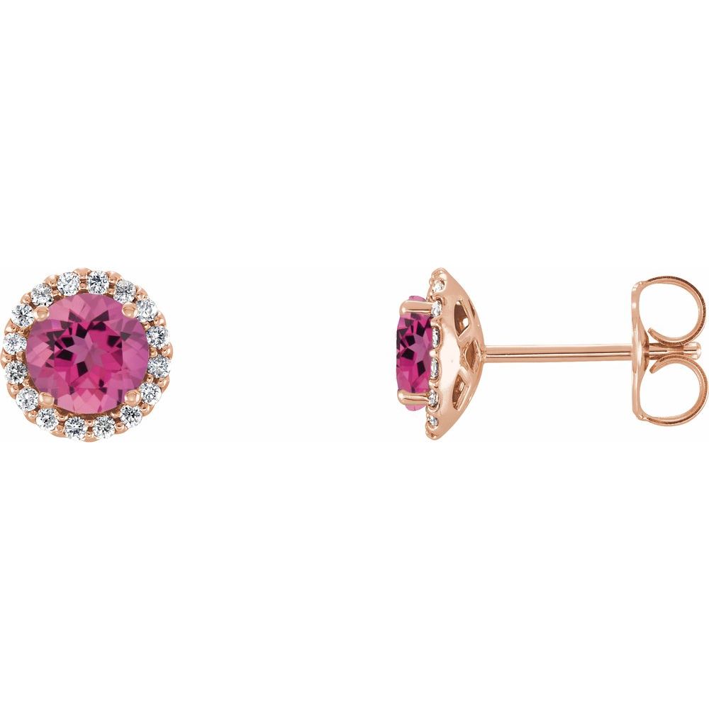 14k Rose Gold Pink Tourmaline and 1/8 cttw Diamond Stud Earrings (G-H, I1)